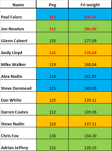 Saturday morning saw a few hangovers and the normal pre-match banter and stating which pegs were desirable. Today I dropped Paul Nichols from drawing for me and Mike Walker got the prestigious slot... He drew me 132, which is a peg that can be good and also has off days, I must admit it's not been a peg that I have had much success from.